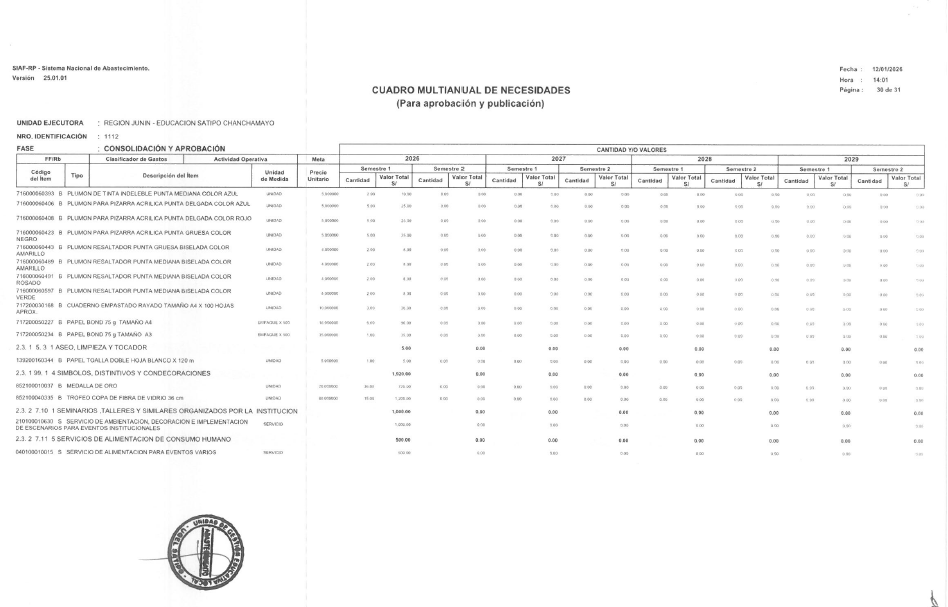 APROBACIÓN DE CUADRO MULTIANUAL DE NECESIDADES 2026-2029