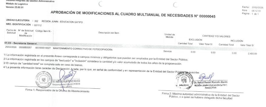 APROBACIÓN DE MODIFICACIONES AL CUADRO MULTIANUAL DE NECESIDADES 2026